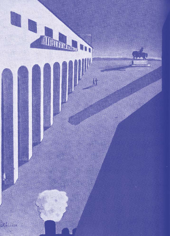 Giorgio de Chirico (1888-1978), Le départ du poète, huile, 1914, 86 × 41 cm. Brentwood, Californie, collection Mrs. L. M. Maitland. Photo extraite de G. de Chirico par J. Th. Soby, Museum of Modern Art, New York 1955.