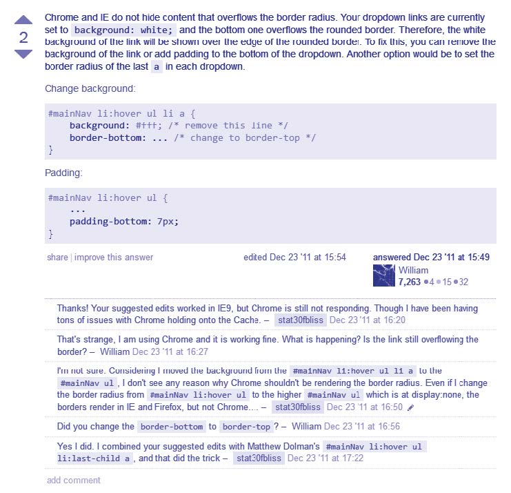 [ Source ] « Chrome not receiving css rounded borders », Stack Overflow, mai 2014.