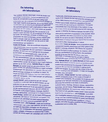 Cette publication réalisée à l’occasion de l’exposition Drawing Typologies au Stedelijk Museum, Amsterdam a été conçue en utilisant le programme Text Pencil, développé par Jonathan Puckley sous Scriptographer. Le dessin manuel du texte anime les caractère dactilographiés.